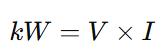 This formula shows how power relates to voltage and current.