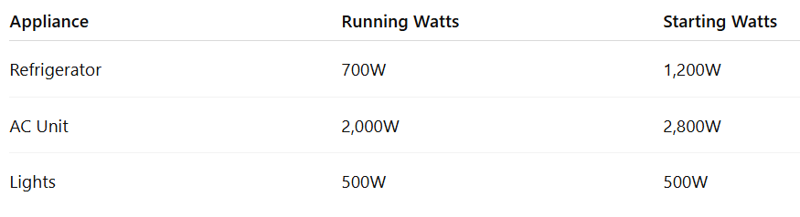 Starting wattage can be 2–3 times higher than running wattage.